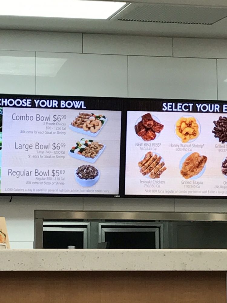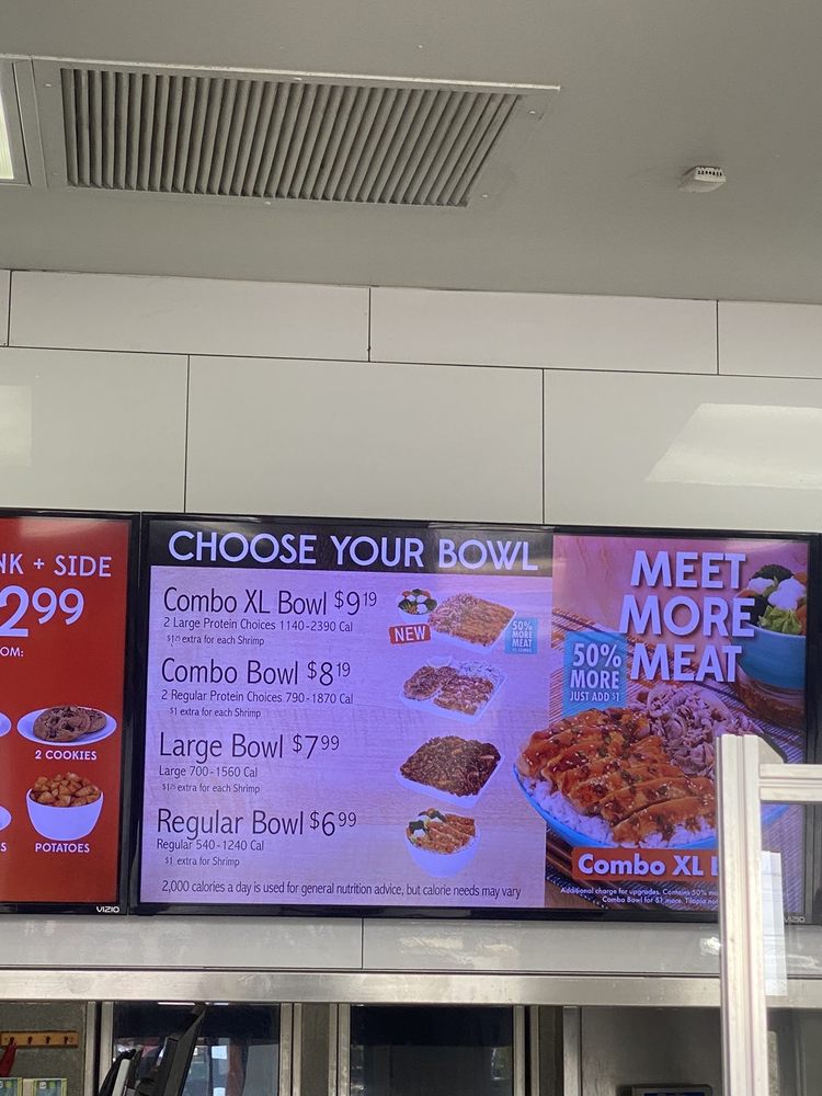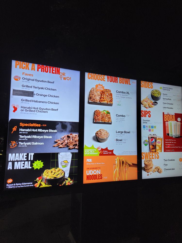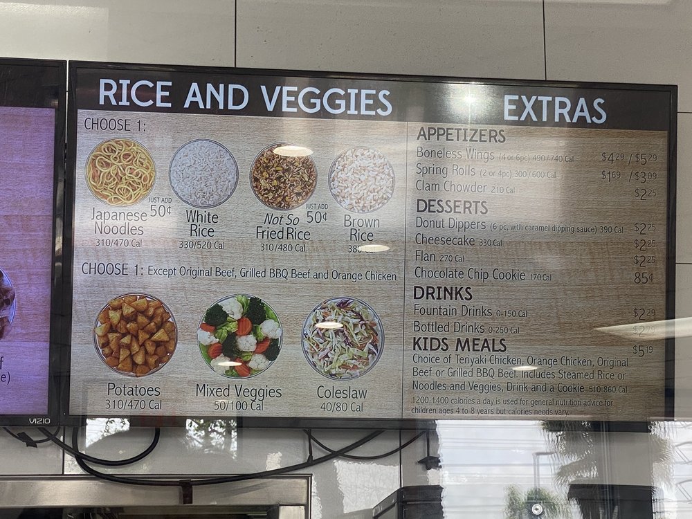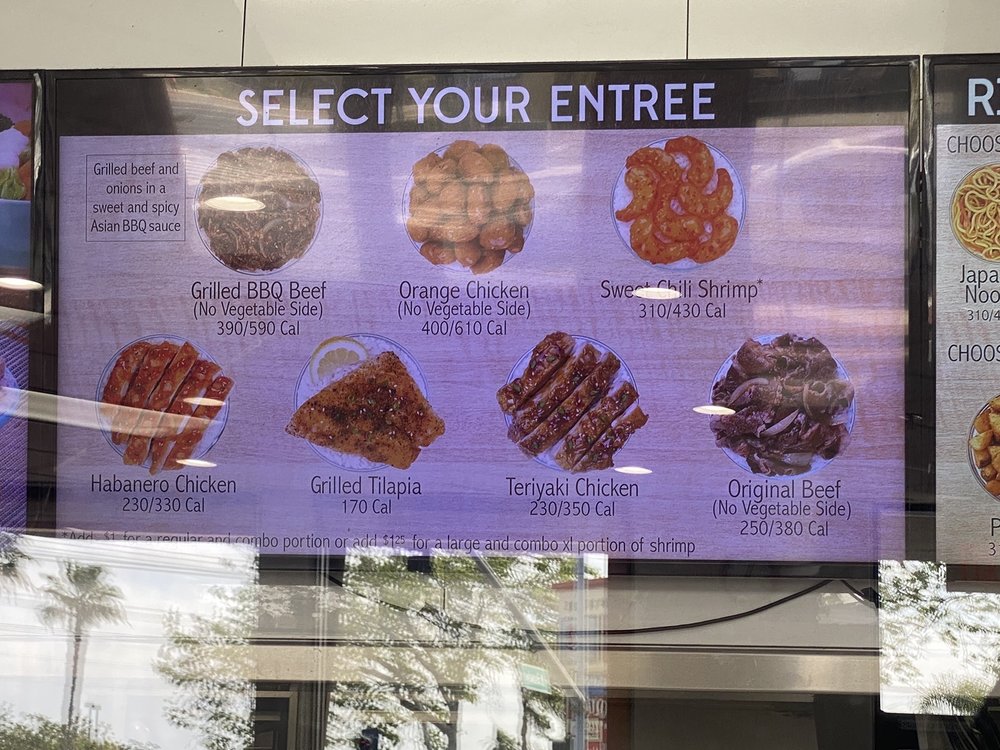Pick two large proteins with your choice of fluffy rice or udon noodles and mixed veggies.